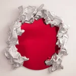 For over three decades, multidisciplinary artist Ted VanCleave has brought his unique visions to life while residing in San Francisco, Los Angeles, and Miami, before settling in Saint Petersburg in 2017. His latest Reflexions Collection of sculptural mirrors combines fluid, organic forms with striking, vibrant colors. Crafted from leather in a completely reimagined way, each piece offers a captivating study in form, with every angle unveiling a new perspective. The interplay of flowing folds, peaks, valleys, and bold metallic finishes makes each mirror an endlessly intriguing focal point.