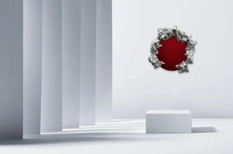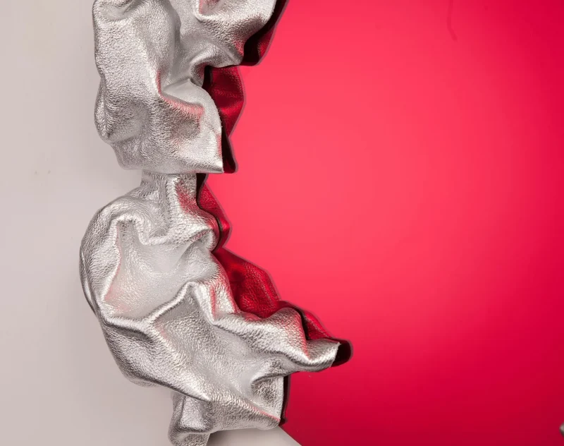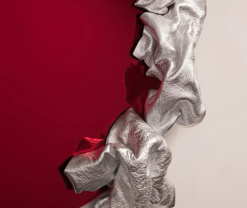 For over three decades, multidisciplinary artist Ted VanCleave has brought his unique visions to life while residing in San Francisco, Los Angeles, and Miami, before settling in Saint Petersburg in 2017. His latest Reflexions Collection of sculptural mirrors combines fluid, organic forms with striking, vibrant colors. Crafted from leather in a completely reimagined way, each piece offers a captivating study in form, with every angle unveiling a new perspective. The interplay of flowing folds, peaks, valleys, and bold metallic finishes makes each mirror an endlessly intriguing focal point.