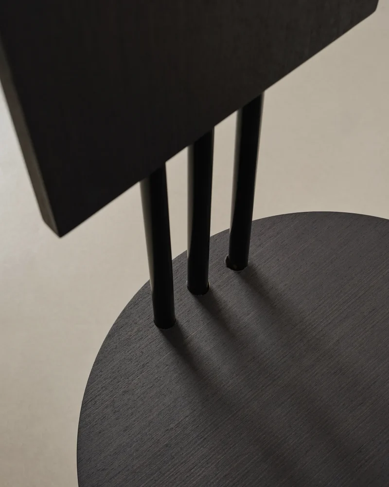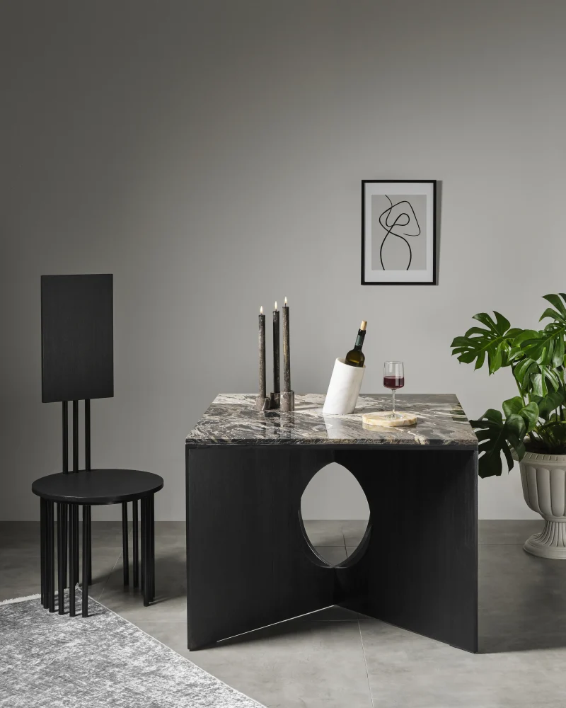 Crafted from Black Alpi veneer and black metal, Reina balances the richness of wood with the strength of metal, creating a sculptural silhouette that elevates any space. Whether as a standalone statement piece or part of a curated interior, Reina embodies sculptural elegance with a distinct sense of presence.