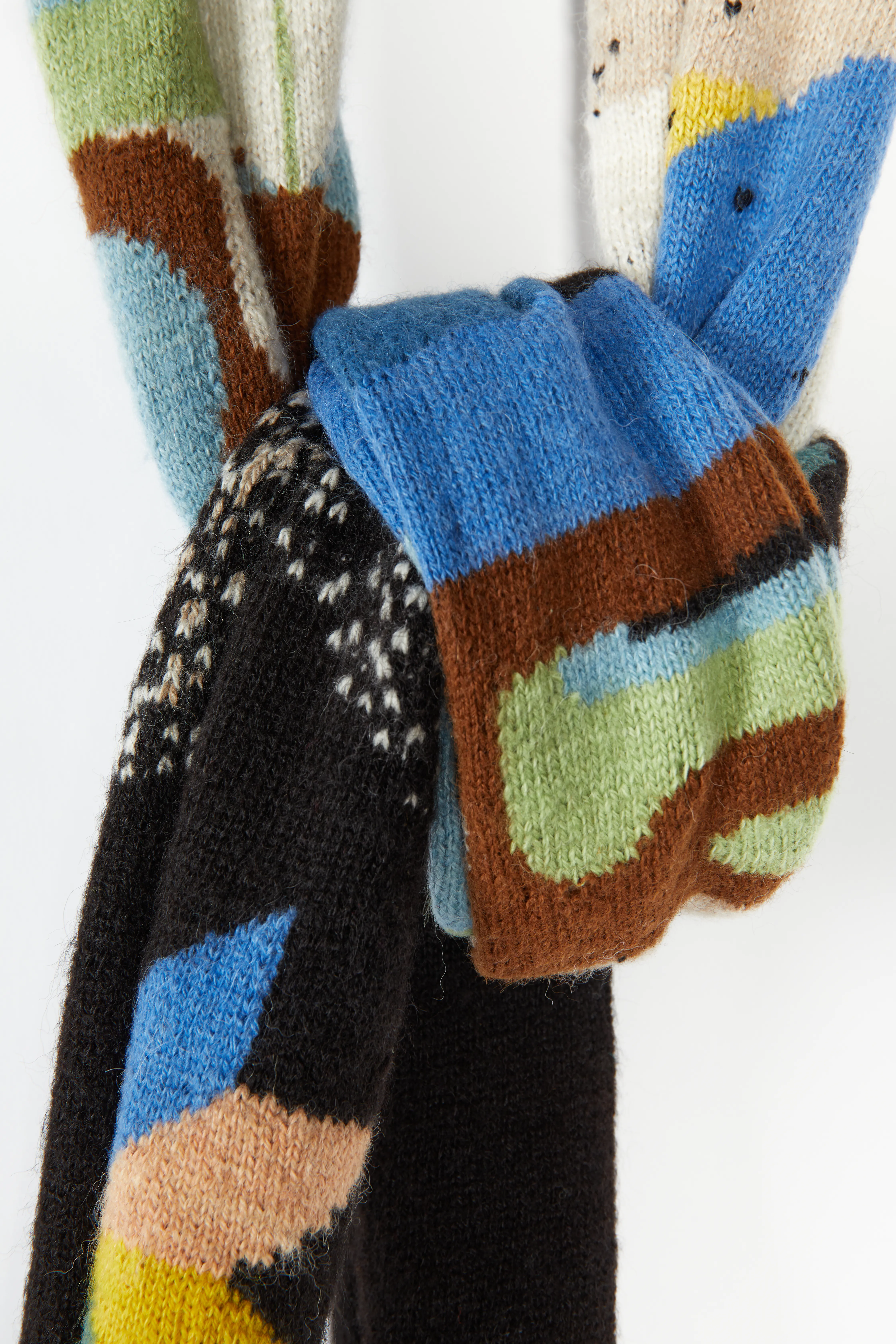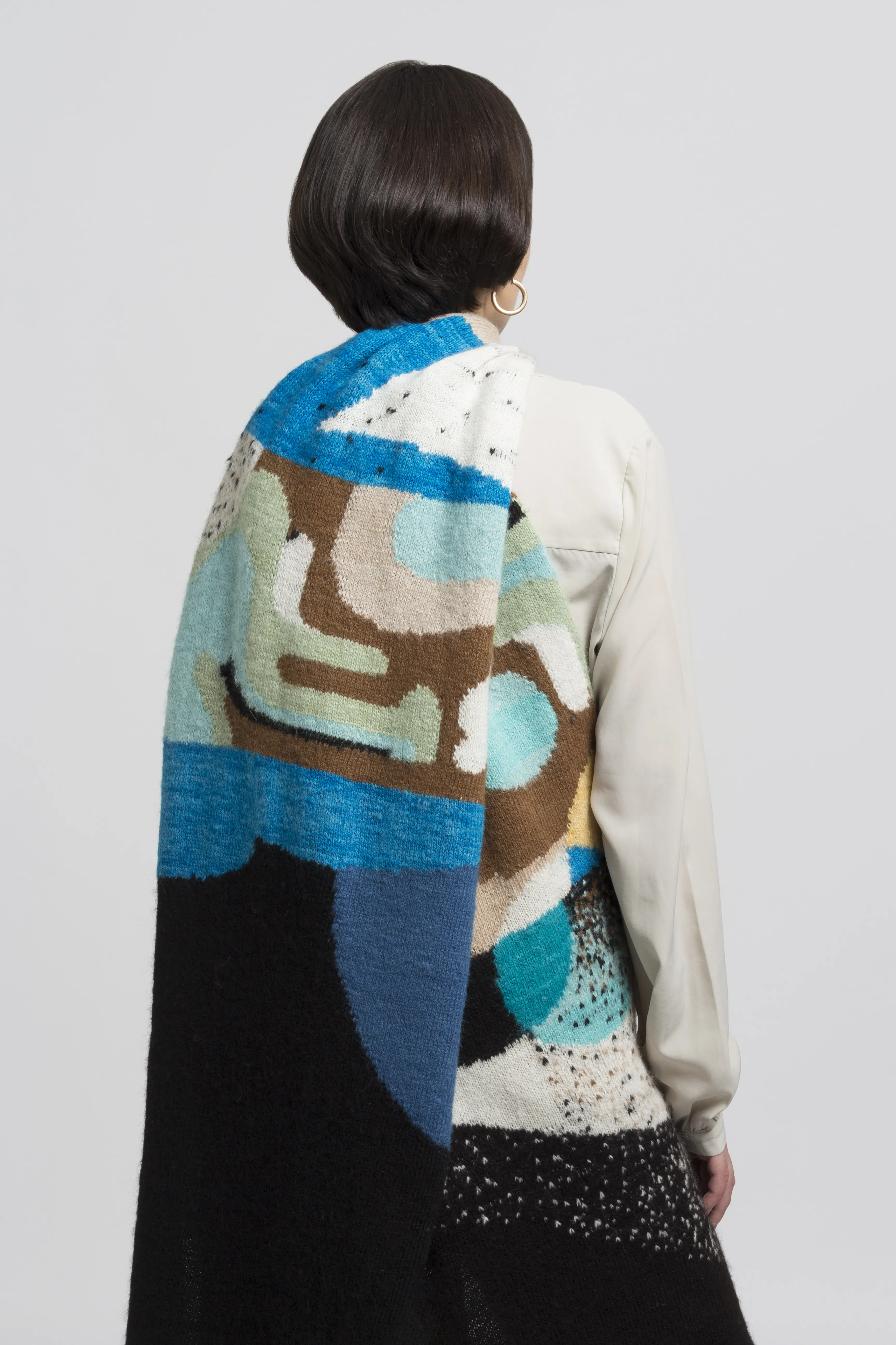 Textile art piece / fashion artefact, co-created by James Reka a.k.a. RekaOne, a Melbourne based contemporary artist, and Peruvian artisan Alicia Calisaya Castillo. Knitted by hand with alpaca fibre.