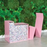 The artist and brand have partnered to design and develop sculptural furniture made with materials created from reclaimed and repurposed footwear. The collection features eye-catching designs that reflect the present and future way of living while questioning one’s everyday actions and needs.