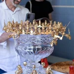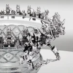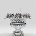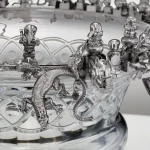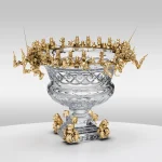 Handmade engraved crystal goblet: with 24car gold-leaf coated brass figures.