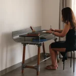 Growing up, studying meant relying on books and handwritten notes. I often found myself propping my books at an angle to read them more comfortably while writing in my notebook, but they would always slide off the table. I would think, What if my desk had a stand to hold my reference book securely? This study table design is inspired by those childhood experiences. Its slanted top provides ergonomic ease for referencing books, while the lower shelf offers a practical solution for keeping your workspace tidy—combining functionality with thoughtful design.