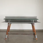 Our contemporary masterpiece, with its seamless blend of materials, thoughtful design, and meticulous craftsmanship, our Curved Aluminium and Indigo Polished Teak Wood Study Table is more than just a piece of furniture; it’s a statement of style.