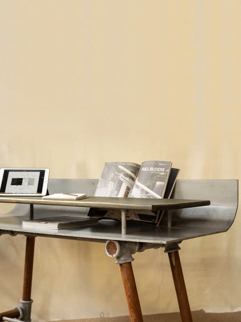 Growing up, studying meant relying on books and handwritten notes. I often found myself propping my books at an angle to read them more comfortably while writing in my notebook, but they would always slide off the table. I would think, What if my desk had a stand to hold my reference book securely? This study table design is inspired by those childhood experiences. Its slanted top provides ergonomic ease for referencing books, while the lower shelf offers a practical solution for keeping your workspace tidy—combining functionality with thoughtful design.