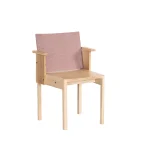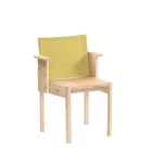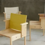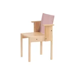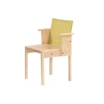 The Resident chair epitomizes clarity in design and durability in construction. This piece showcases a captivating geometrical pattern of lines and planes that not only add aesthetic appeal but also ensure longevity. The standout feature of this chair is its compact armrest and fabric backrest, a harmonious blend of natural warmth and modern comfort. The arms are designed