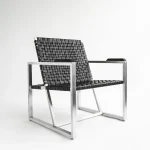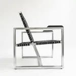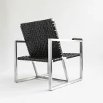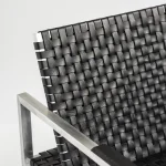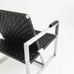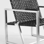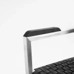 The RIA II Chair is a refined evolution of RIA Design Studio’s flagship piece, RIA I, thoughtfully reimagined for an urban lifestyle. Upon relocating to Brooklyn, New York, RIA’s founder found inspiration in the city’s industrial character and stylish residents. The RIA II’s brushed aluminium frame reflects New York’s rugged yet modern aesthetic, while the black pebbled leather and intricate weaving add texture and elegance. Charred oak handles, crafted using the ancient Japanese Shou Sugi Ban technique, bring an international influence, embodying the Studio’s global perspective.