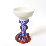 For this series, Triantafylli scanned various shapes she made out of clay. These hand-shaped forms are 3D printed and then combined with the porcelain part in order to create this pedestal cup.