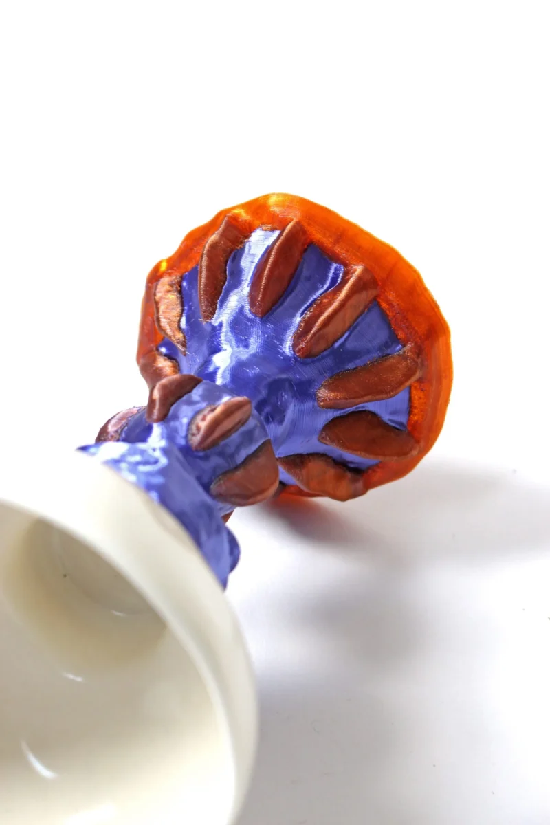 This hybrid object is part of Natalia Triantafylli’s ongoing dialogue between physical and digital ways of making. The top portion of the cup is made out of slip-casted porcelain.
