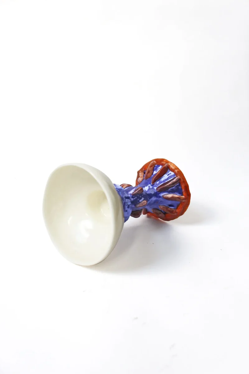 For this series, Triantafylli scanned various shapes she made out of clay. These hand-shaped forms are 3D printed and then combined with the porcelain part in order to create this pedestal cup.
