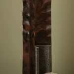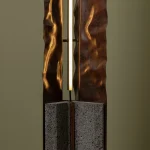 RIVARNO® is an illuminated sculpture inspired by the meeting of the sea and the river. Handcrafted in copper by artisans from Santa Clara del Cobre, Michoacán, and mounted on hand-carved basalt stone, it conveys the subtlety of each wave along its sides and the strength of the earth in its base.