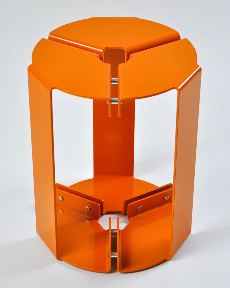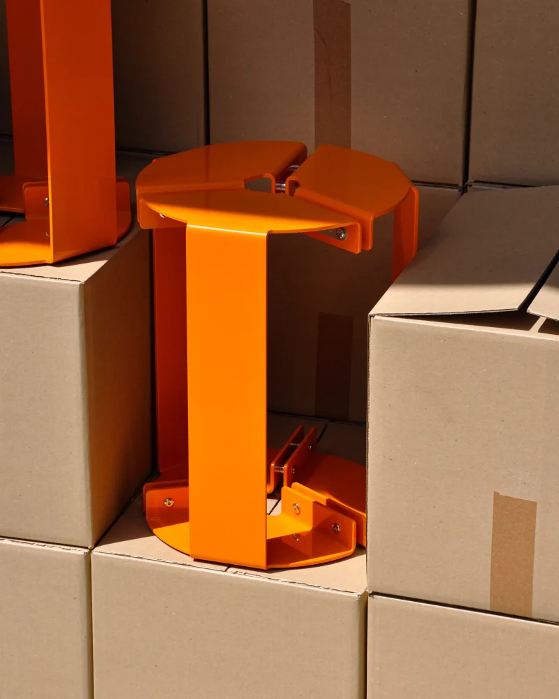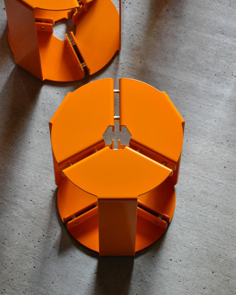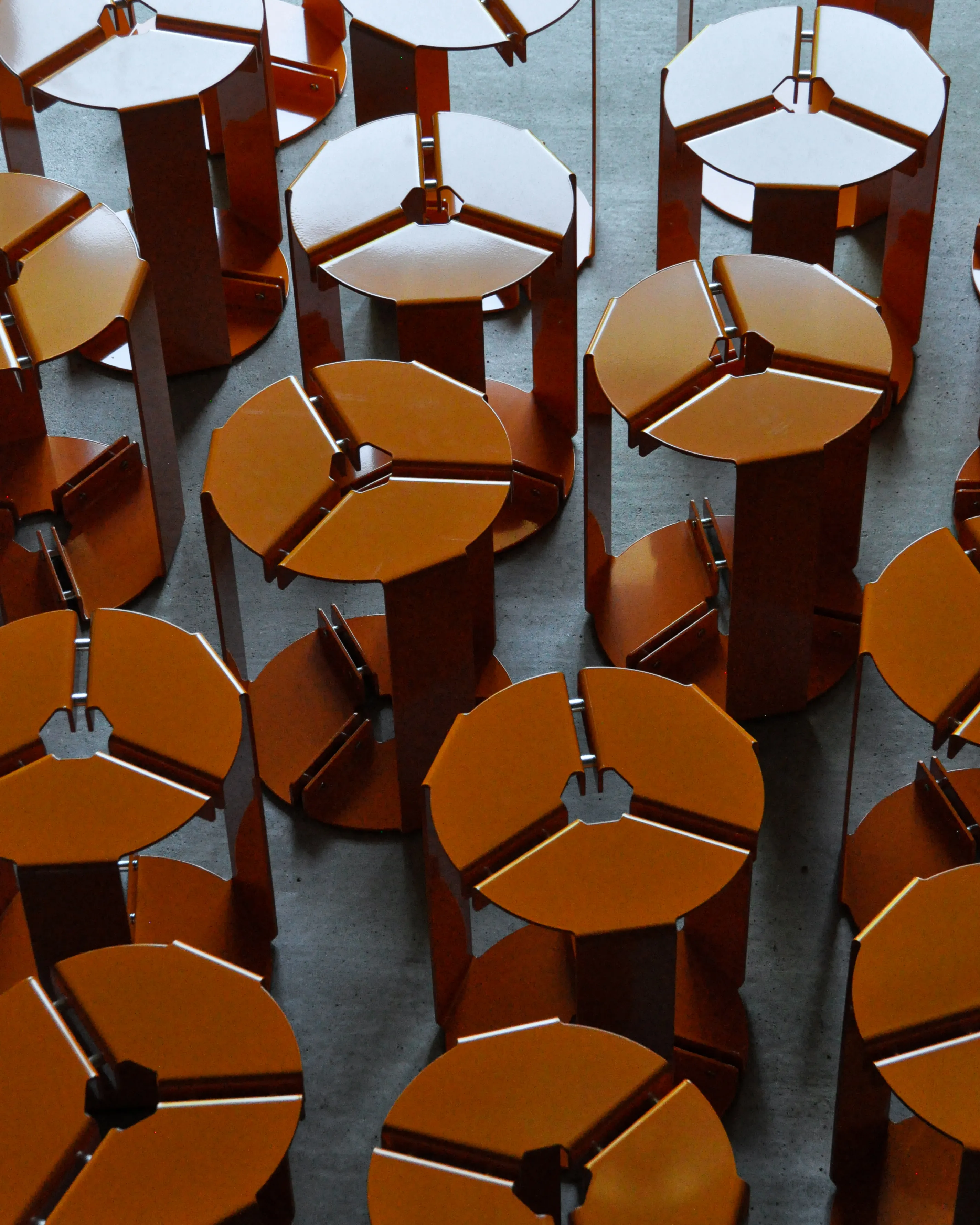The design of this lamp gave rise to other creations as well as the 'sandwich design concept'. The insertion of assembly elements between two sheets of metal, allowing a dismountable design, became MLK Furniture's signature.