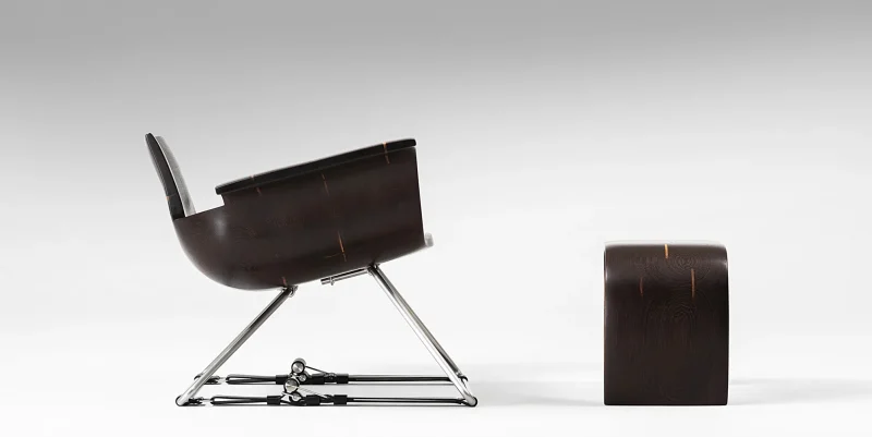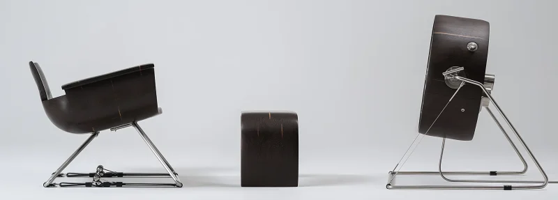 The Seat is completely handmade of thick wenge planks joined tongue-and-groove. Chair legs are made of stainless steel bars with an adjustable seat inclination angle to suit your needs.