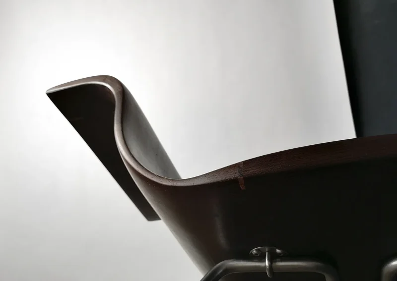 It is entirely handcrafted with stunning attention to detail. Made of premium materials: wenge wood, stainless steel and vegetable-tanned leather.