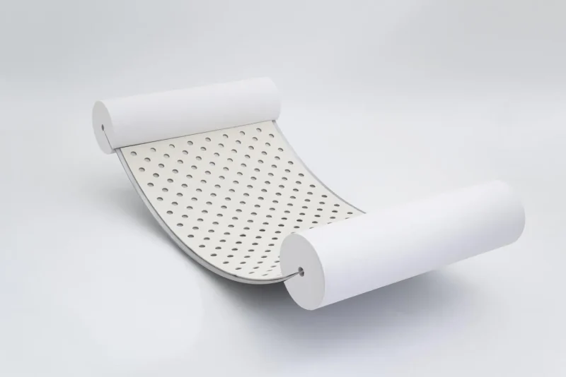 The Rocking Daybed by Studio Endurance is made from a one piece rolled-bend aluminium sheet.