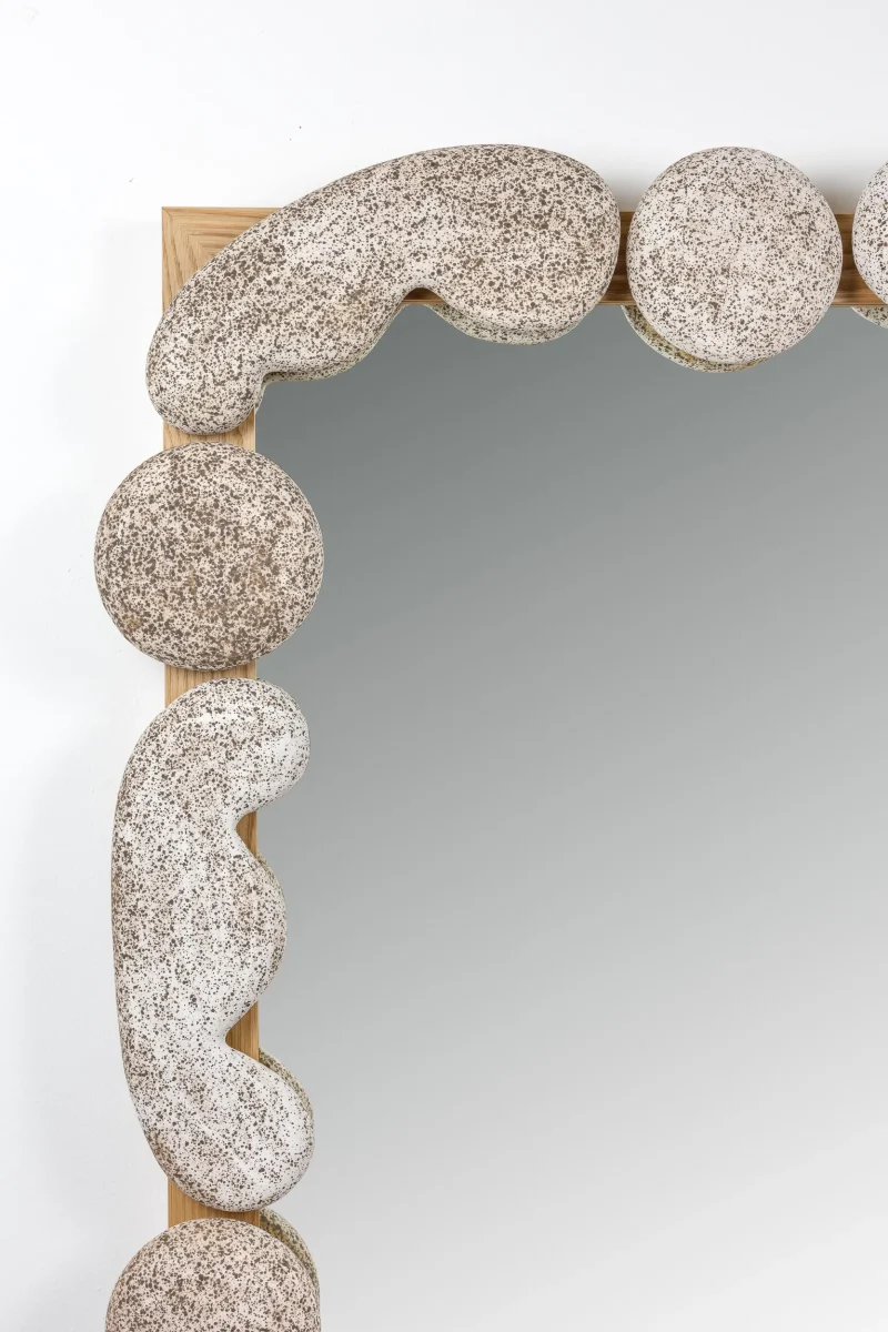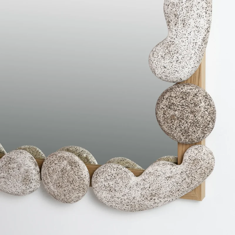 The Roebling Wall Mirror by Luft Tanaka Studio offers a contemporary take on the classical masonry and brickwork of Brooklyn with custom elements created in collaboration with Calyer Ceramics.