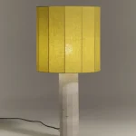 The NASSI LAMPS table lamp features a stunning natural white travertine base paired with sleek nickel-plated brass details, creating a perfect balance of mid-century modern and minimalist design. Its clean-lined aesthetic brings sophistication and style to any room. The hand-sewn, plastic-free lampshade is available in a range of colors, offering customizable options to match your decor. Choose from small, medium, or large sizes to fit your space perfectly. This table lamp is ideal for adding a touch of elegance and modern charm to your home or office