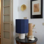 The lamp can be customized to work in any country, the lampshade color can be chosen between the colors of the collection: white, dark blue, lemon yellow, brick red