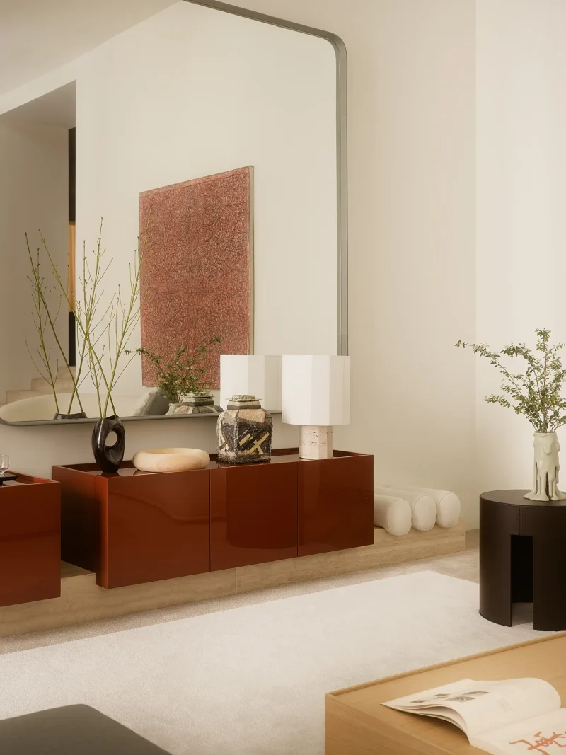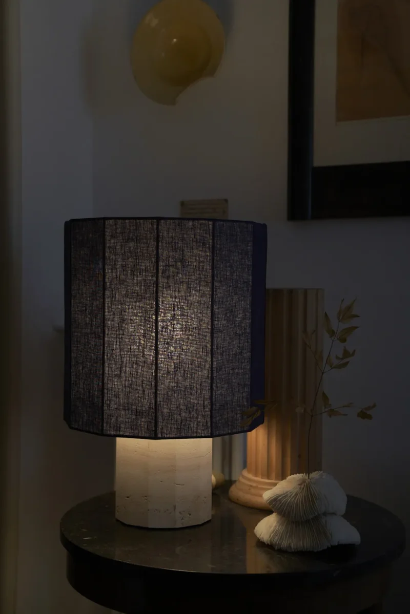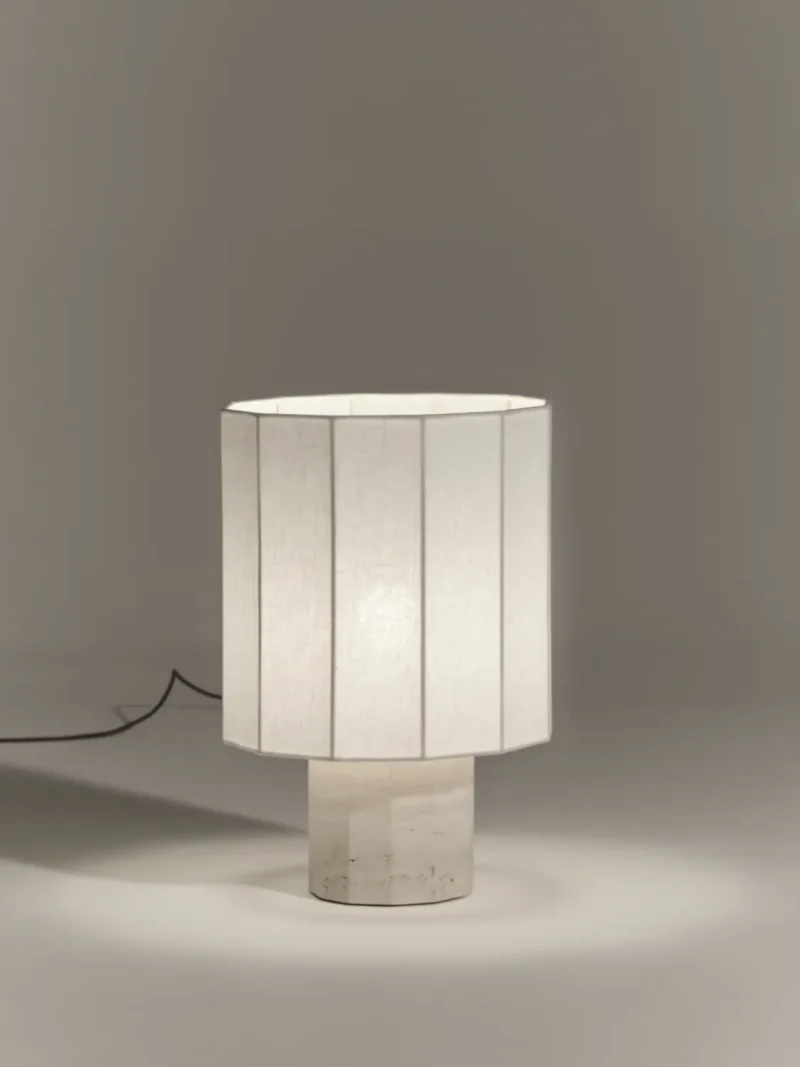 The NASSI LAMPS table lamp features a stunning natural white travertine base paired with sleek nickel-plated brass details, creating a perfect balance of mid-century modern and minimalist design. Its clean-lined aesthetic brings sophistication and style to any room. The hand-sewn, plastic-free lampshade is available in a range of colors, offering customizable options to match your decor. Choose from small, medium, or large sizes to fit your space perfectly. This table lamp is ideal for adding a touch of elegance and modern charm to your home or office