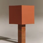 This table lamp by NASSI LAMPS brings together the warmth of natural red travertine and the cool sophistication of nickel-plated brass accents, offering a clean, minimalist design that feels effortlessly modern. The hand-sewn, plastic-free lampshade comes in a range of colors, with the option to add a matching top diffuser for a soft, ambient glow. Thoughtfully crafted and beautifully simple, it’s a timeless addition to any interior.