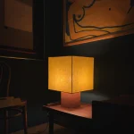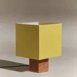Crafted by NASSI LAMPS, this table lamp showcases a natural red travertine base paired with nickel-plated brass details, delivering a minimalist, modern aesthetic with clean lines. Its plastic-free, hand-sewn lampshade is offered in a range of colors, with the option to include a matching top diffuser for a softly diffused glow. A blend of timeless materials and thoughtful design makes this lamp a stylish and sustainable choice.