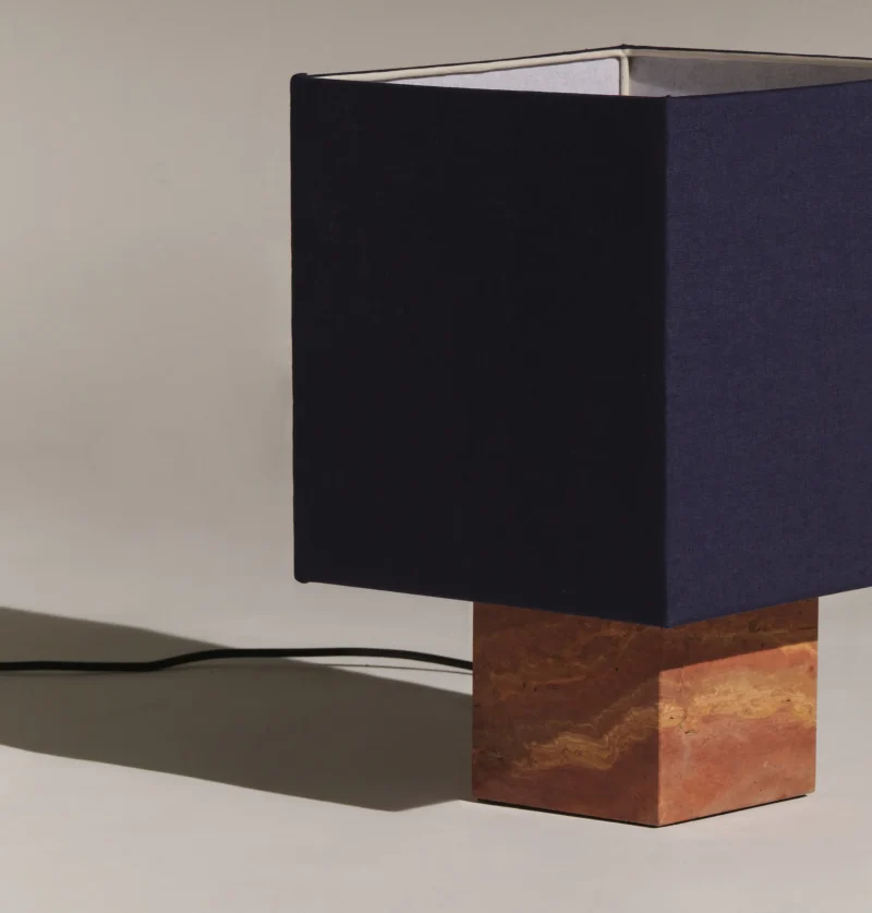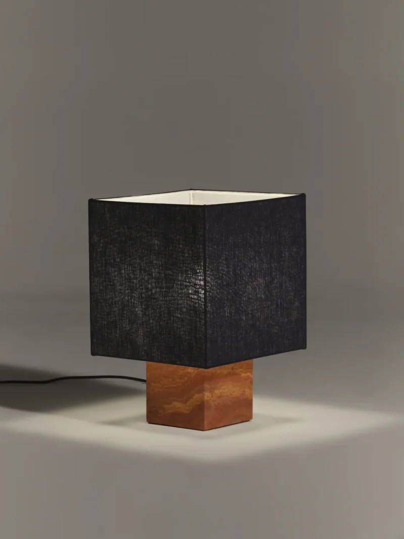 This table lamp by NASSI LAMPS combines the earthy elegance of natural red travertine with sleek nickel-plated brass accents, creating a minimalist design with clean, modern lines. Its hand-sewn, plastic-free lampshade is available in a variety of colors, offering both style and sustainability. For a polished finish, an optional top diffuser in matching colors adds a soft, refined touch to this versatile lighting piece.