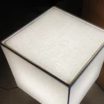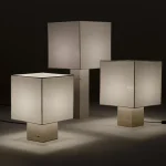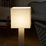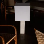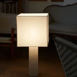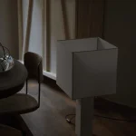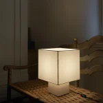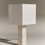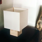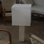 Designed by NASSI LAMPS, this table lamp highlights a natural white travertine base paired with sleek nickel-plated brass details for a refined, minimalist look. The plastic-free, hand-sewn lampshade comes in a variety of colors, with an optional matching top diffuser to enhance its soft, ambient glow. Available in small, medium, or large, this timeless piece effortlessly complements modern interiors.