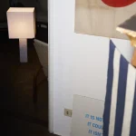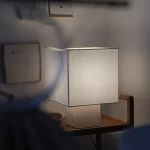 The lamp can be customized to work in any country, the lampshade color can be chosen between: white, dark blue, lemon yellow, brick red.