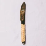 Wicker and damascene steel knife made by two master craftsmen from Spain. This knife is hand crafted by artisans, each piece is made with expert craftsmanship to provide an eclectic and one-of-a-kind look. The high-quality materials ensure that your set will be durable and long-lasting.