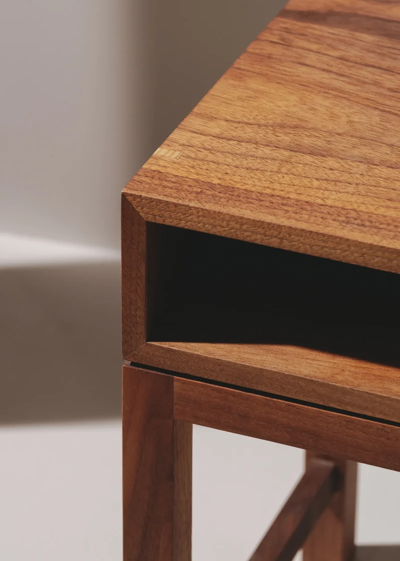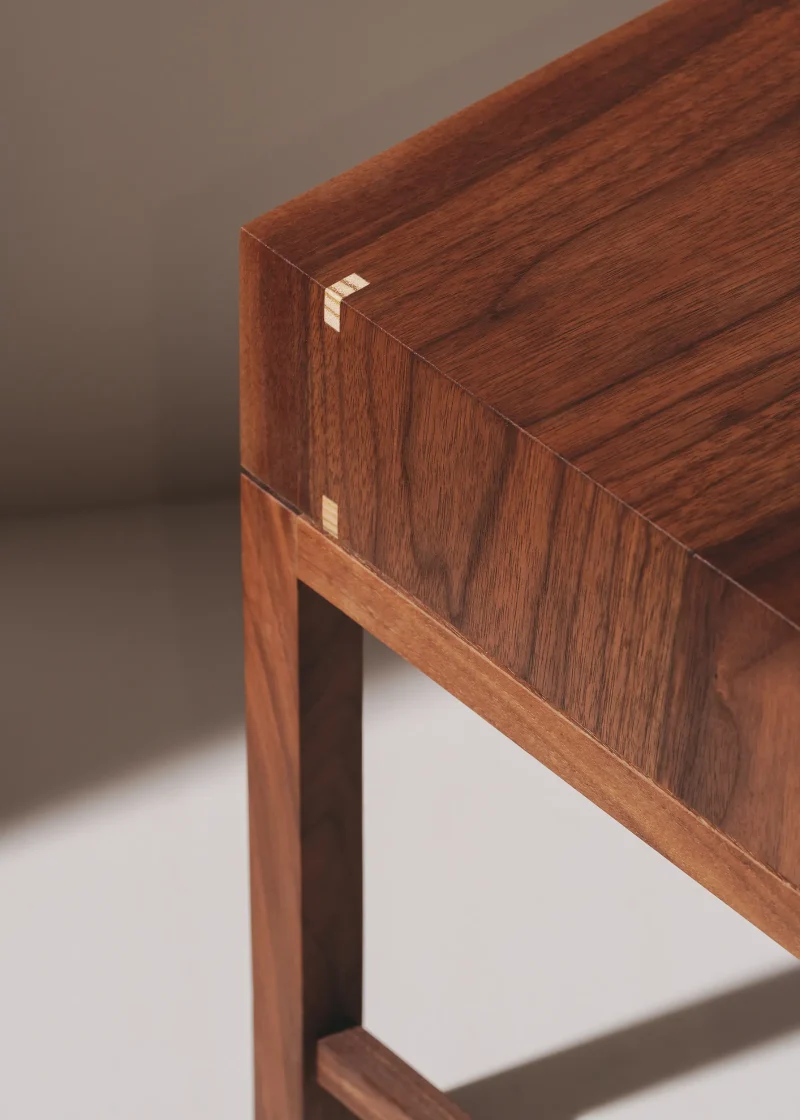 This bedside table by Mike Hausmann, crafted from American walnut, is an example of a piece rich in artisanal detail while embodying a timeless and simple design.
