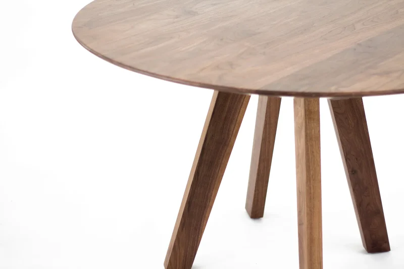 This round dining table by Ricardo Rodríguez Elías is crafted entirely from rich, solid walnut, highlighting the natural beauty and warmth of the wood. Its design features four sturdy, well-crafted legs that provide excellent stability while maintaining a sleek and modern profile. With seating capacity for 4 people, this table combines functionality with timeless style, making it ideal for both contemporary and classic interior spaces. The fine grain and smooth finish of the walnut create a striking visual appeal, making this piece a standout addition to any dining area.