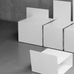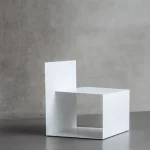 RSUP–1 by THE RAUM OBJECTS is part of a collection of four chairs, each representing one letter in the word “Raum”. RSUP–1 opens up the question: How do you use an r? The four individual objects can be put together, side by side, and they interlock to form a bench. Imperfect and then again perfect.