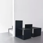 RSUP–2 by THE RAUM OBJECTS, is part of a collection of four chairs, each representing one letter in the word “Raum”. RSUP–2 opens up the question: How do you use an a? The four individual objects can be put together, side by side, and they interlock to form a bench. Imperfect and then again perfect.