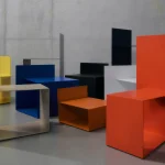 RSUP–3 by THE RAUM OBJECTS is part of a collection of four chairs, each representing one letter in the word “Raum”. RSUP–3 opens up the question: How do you use an u? The four individual objects can be put together, side by side, and they interlock to form a bench. Imperfect and then again perfect.