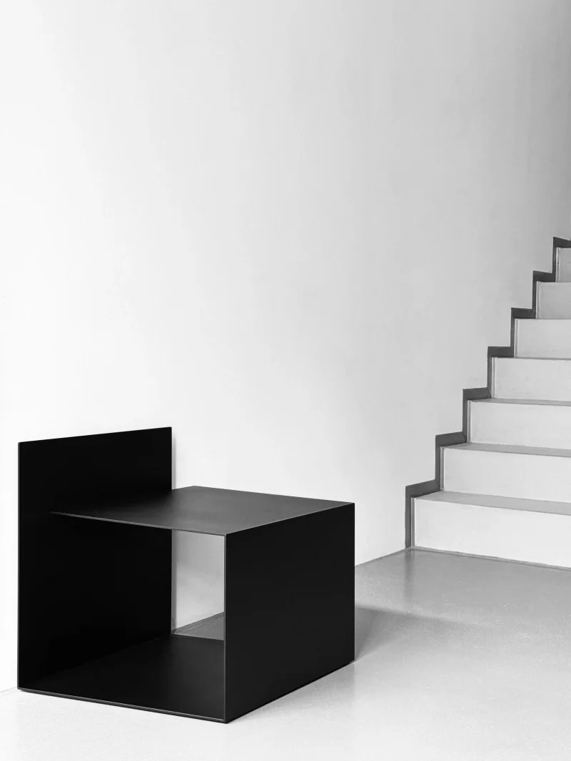 RSUP–3 by THE RAUM OBJECTS is part of a collection of four chairs, each representing one letter in the word “Raum”. RSUP–3 opens up the question: How do you use an u? The four individual objects can be put together, side by side, and they interlock to form a bench. Imperfect and then again perfect.