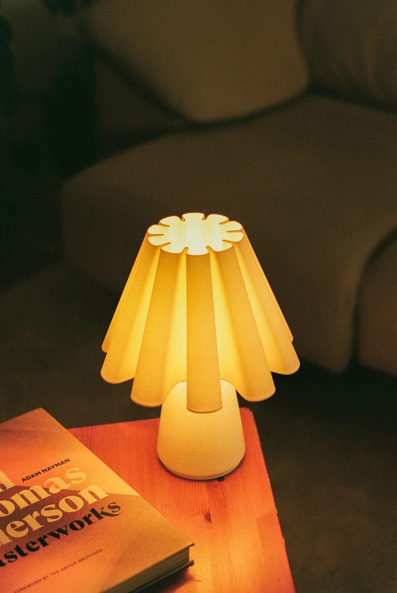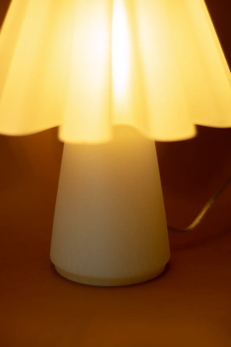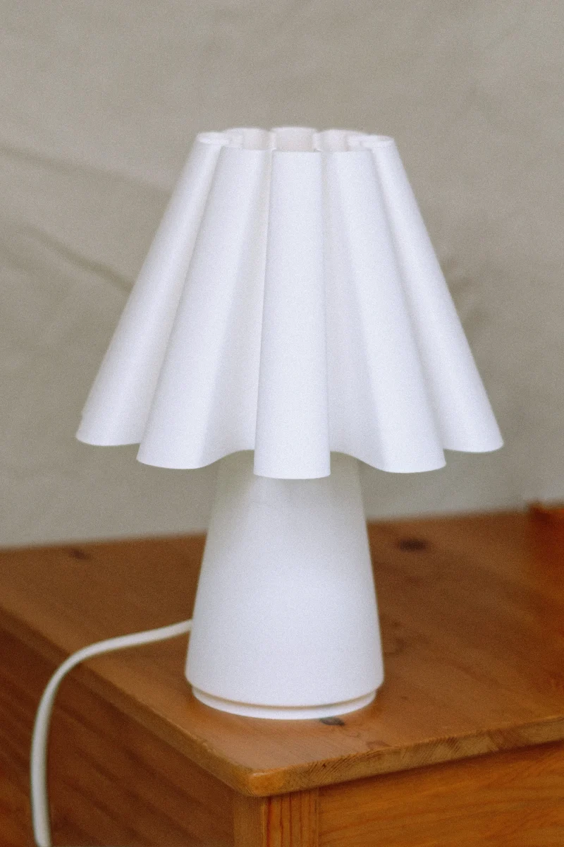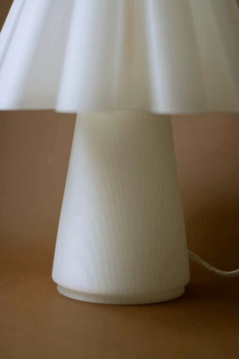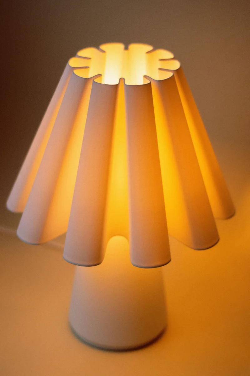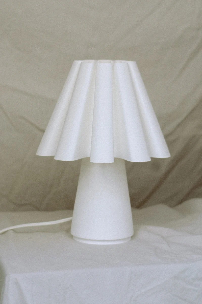 The Ruff Lamp by Mina Wright is fully 3D printed. Printing with 100% recycled PLA produced from corn starch, non-toxic and plant-based, with material imported from the Netherlands.