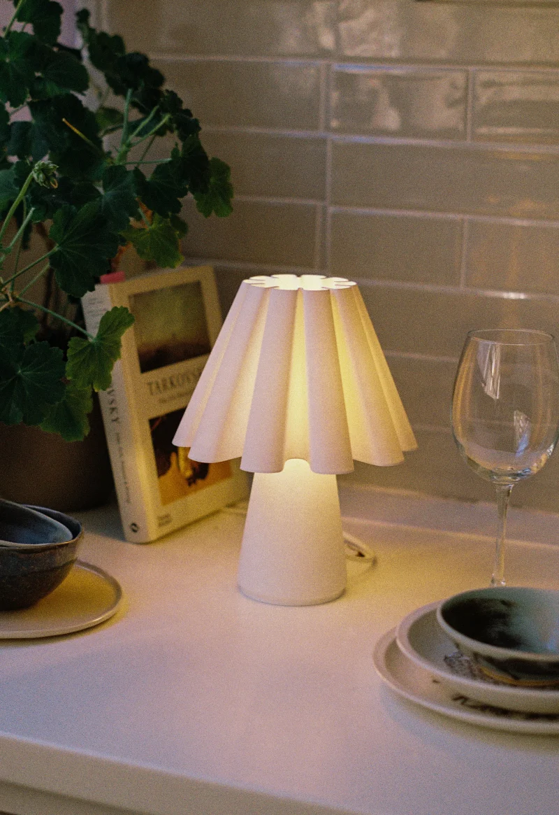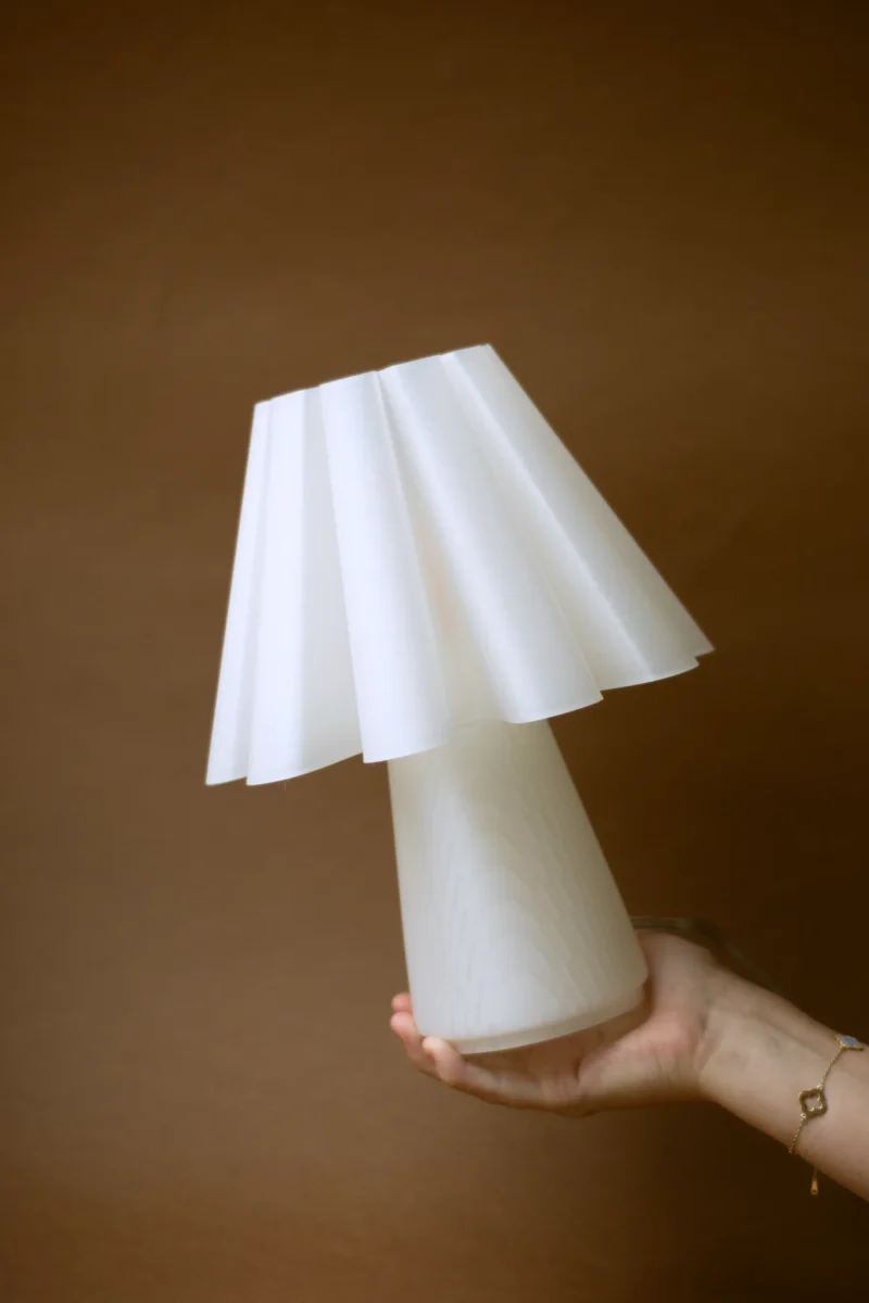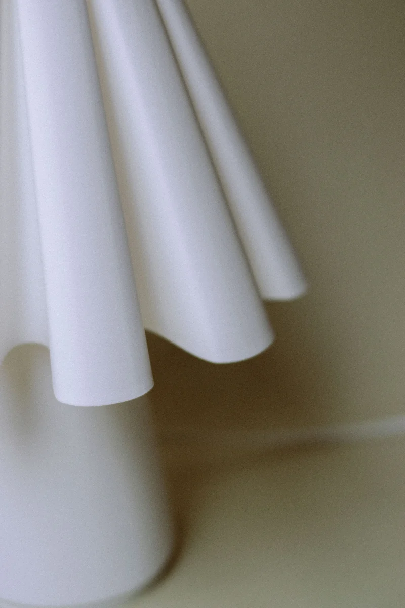 Inspired in the mid-16 to the mid-17th century “Ruff Collar” was used as a fashion feature. Ruff Lamp transports us to the era while embracing the present with the 3D printing technique and classic and minimal touch. This piece will bring a warm and neat glow to any corner of your space.