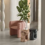 The “Ruffle” Armchair draws its inspiration from the playful and elegant shapes of blouse ruffles. With soft, upholstered contours, the chair captures a sense of movement and fluidity, adding both comfort and charm to any space. The design is whimsical yet refined, bringing a touch of softness and creativity to your living room or lounge area.