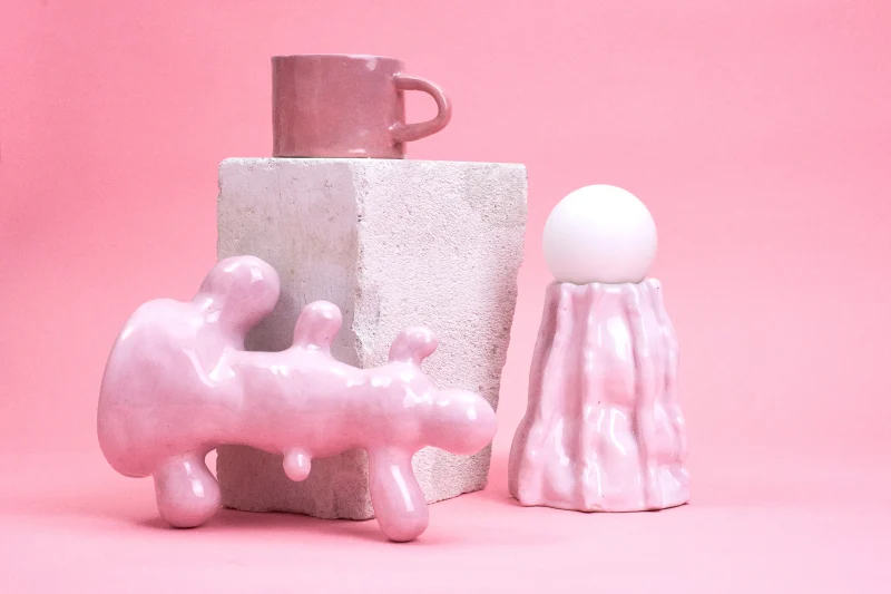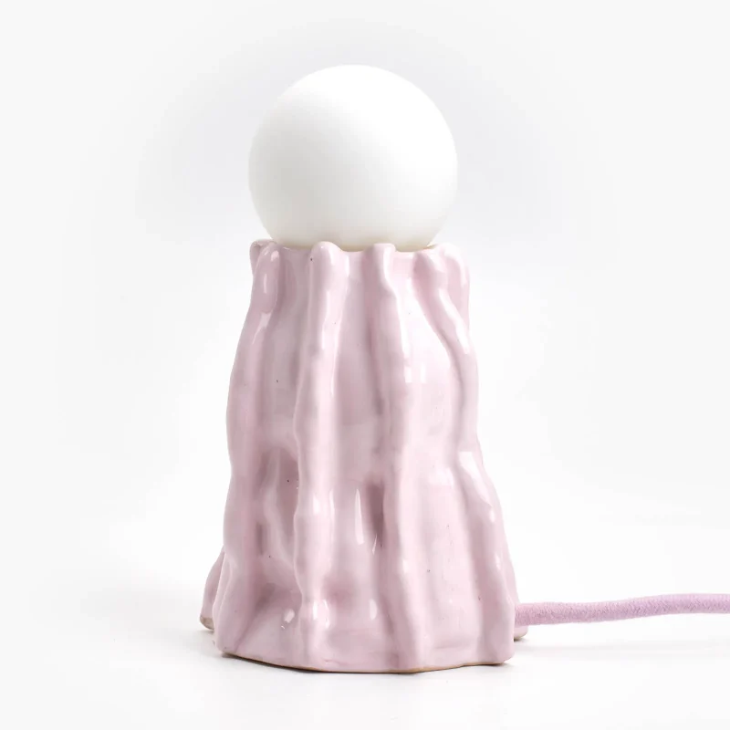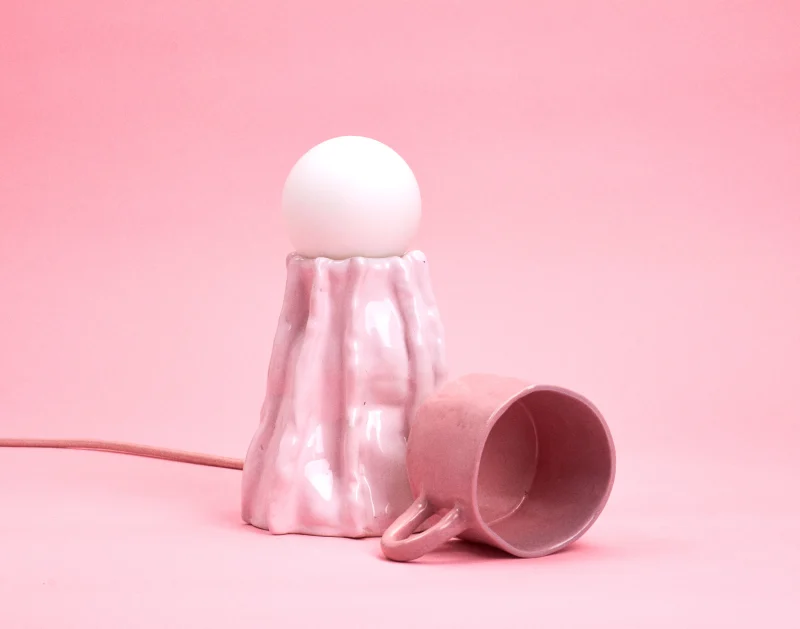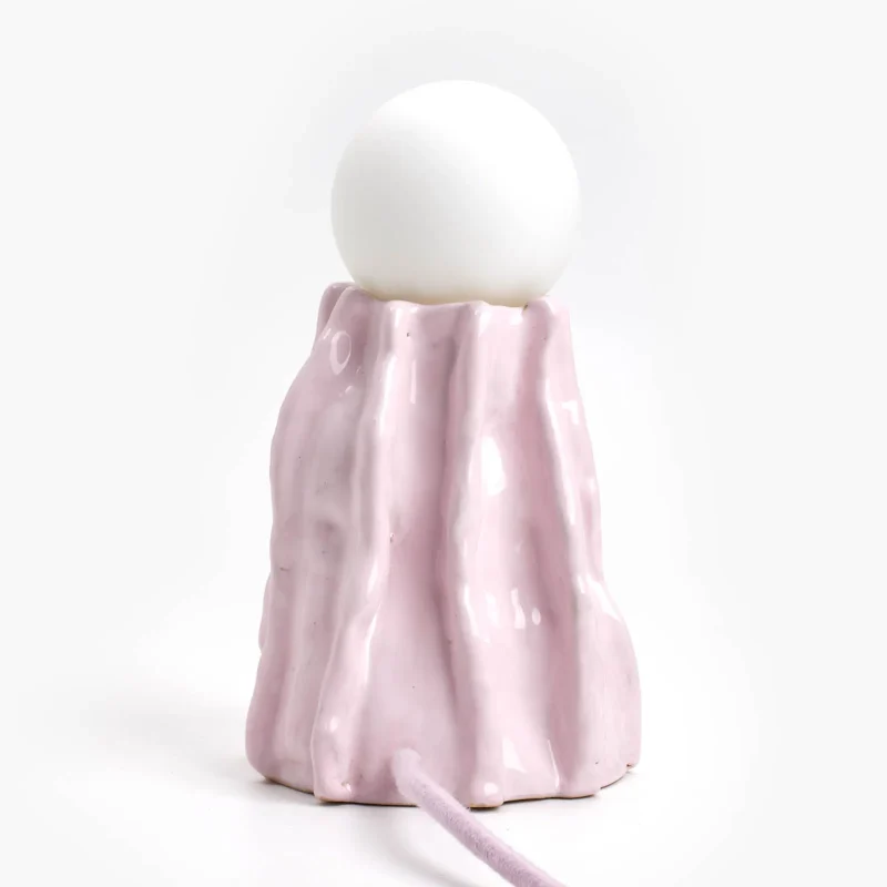 Ruffler Pink Lamp is a handcrafted ceramic lamp by SIUP Studio with on/off switch, 50W tungsten, 1,5m cord.