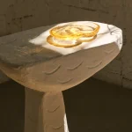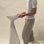 This totem is conceived as both a sculptural object and a functional support or simply as a standalone piece. Inspired by the natural balance of stones stacked one upon another, it is built through a process of layering materials without molds, allowing each form to emerge with its own distinct character. Each totem is unique, a singular balance of textures and shapes, like a stone sculpture reimagined through contemporary materials.