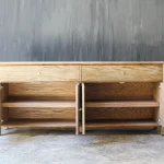 Our rustic Rosa Morada sideboard is the perfect addition to any home looking for both style and functionality. Handcrafted from high-quality Rosa Morada wood, it features a beautiful rustic finish that adds character to any room. With ample storage space and sturdy construction, this sideboard can be used as a statement piece in your living room, dining room, or bedroom. The natural variations in the wood grain give it a unique look, making it an ideal choice for those seeking a one-of-a-kind piece. Order your Rosa Morada sideboard today and enjoy the perfect blend of rustic charm and practicality.
