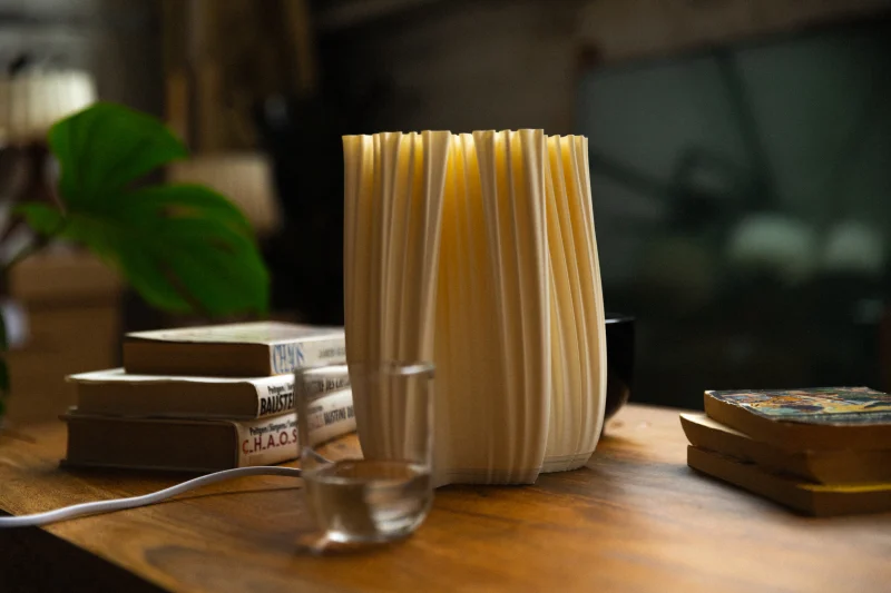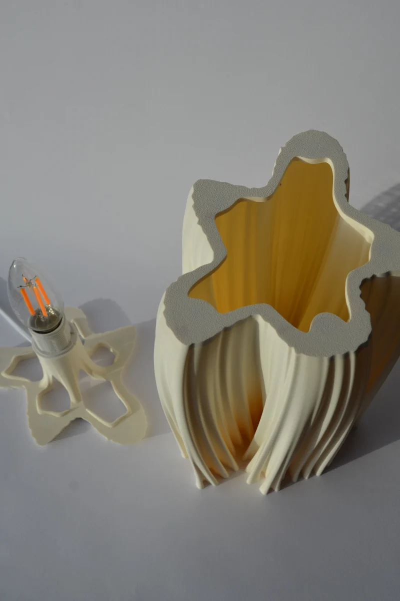 The lampshade is biodegradable and made of a warm white corn starch-based biopolymer. It can be easily separated from the lamp’s base thanks to its magnetic connection. It is robust and waterproof, making it easy to clean.