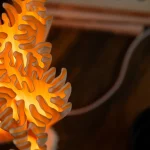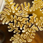 The design features reaction-diffusion patterns that mimic the natural growth processes that create coral’s hypnotic textures. The algorithm captures the interplay of different chemical morphogens spreading and reacting, similar to how coral polyps gradually build their calcium carbonate structures.
