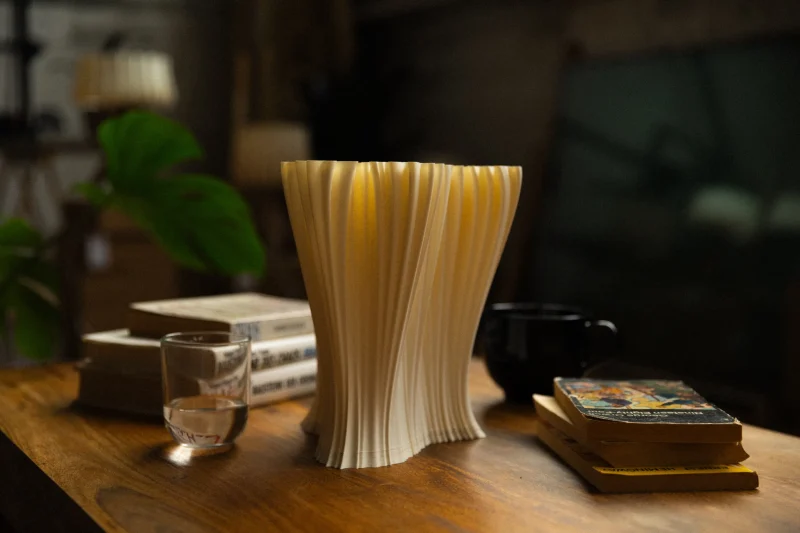 The lampshade is biodegradable and made of a warm white corn starch-based biopolymer. It can be easily separated from the lamp’s base thanks to its magnetic connection. It is robust and waterproof, making it easy to clean.