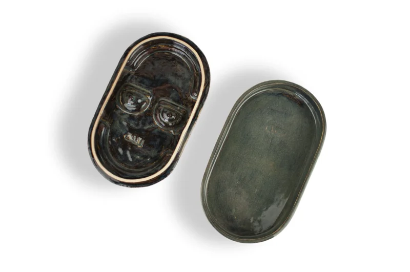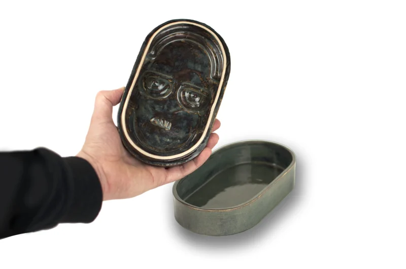 Unique ceramic stashbox in a limited edition of 10 pieces, each item is handmade, one-of-a-kind, varying slightly in size, shape, and glaze.