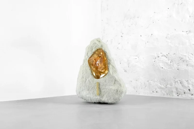 “Sakurajima” is part of the “Precious Artefact” capsule collection of light sculptures by Audrey Guimard and Marie Jeunet. On sculptural stone plinths, like so many mineral landscapes, are integrated sheets of coloured glass and blocks of raw material which, through skilful play of lights and textures, magnify the stone and the surfaces surrounding them. Coloured transparencies and hypnotic caustics evolve before our eyes throughout the day.