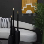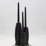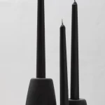 Crafted with precision, these candle holders feature slipcasted ceramic adorned with a matte black glaze, providing both durability and the tactile charm of traditional “barro negro” pottery. Influenced by Quito’s sacral and baroque motifs, they are complemented with handcrafted decorative candles from skilled artisans.