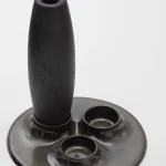 Decorative candleholder with slip casted ceramic base, and solid seike wood lathed plynths in Ébano or Gold Leaf finish.