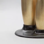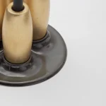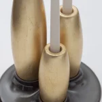 Decorative candleholder with slip casted ceramic base, and solid seike wood lathed plynths in Ébano or Gold Leaf finish.