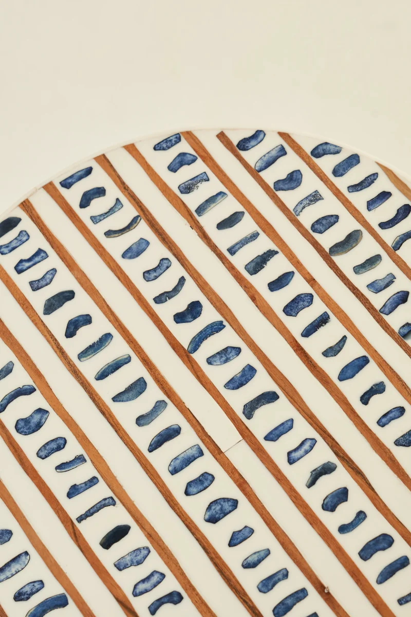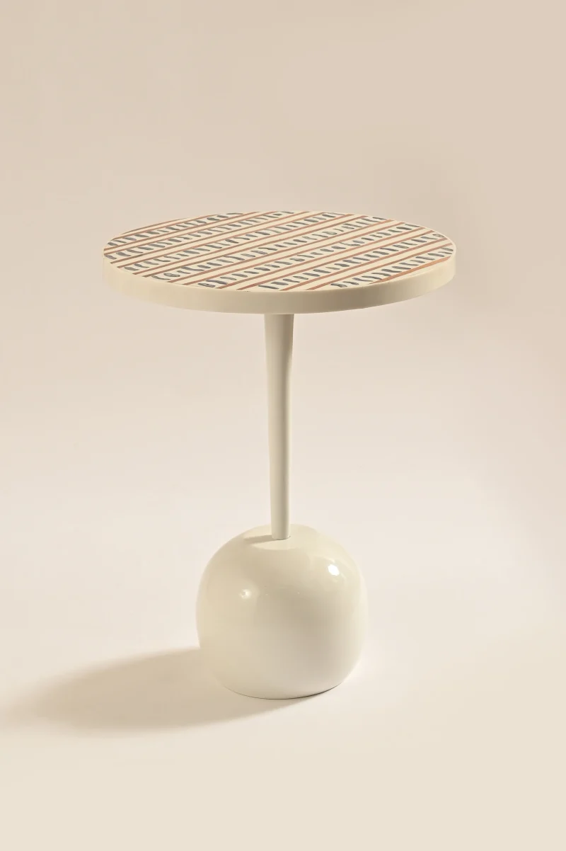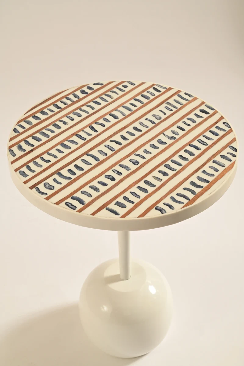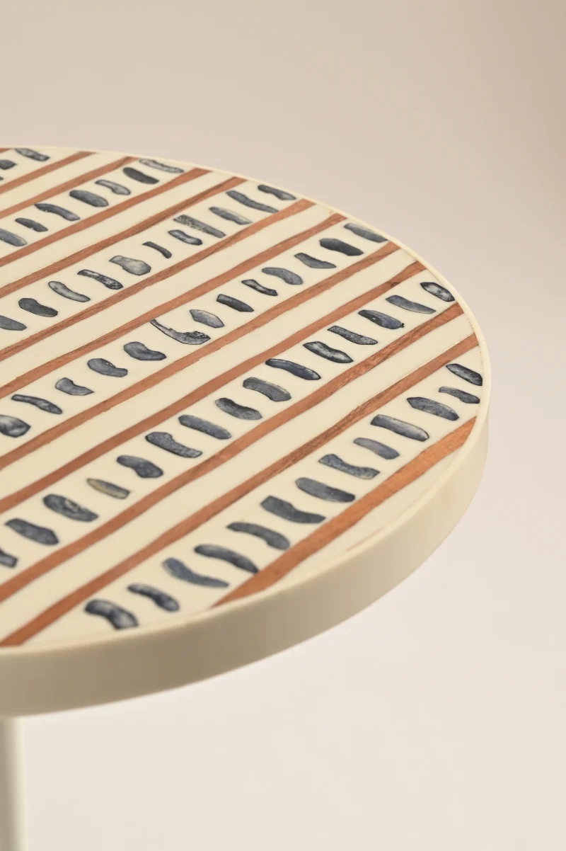 Embrace the fusion of nature and modernity with LMNOH’s Bone Inlay table. This exceptional piece, with its sturdy round aluminium base, strikes an exquisite balance between organic charm and contemporary chic. The table’s intricate, flowing inlay pattern introduces a dynamic, modern vibe that perfectly accentuates both contemporary and eclectic interior themes. Each piece is a testament to craftsmanship, meticulously handmade by specialized artisans hailing from the streets of Sambhal, India.